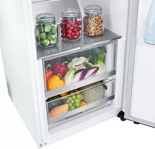 Влажность — один из важнейших факторов свежести продуктов. Уникальная функция FRESH Balancer от LG поддерживает оптимальный уровень влажности, закрывая контейнер для овощей, что позволяет дольше сохранять овощи и фрукты свежими. Ящик FRESH Balancer удерживает влагу внутри, а подвижные элементы управления поддерживают оптимальную влажность для фруктов и овощей в зависимости от выбранного вами режима.