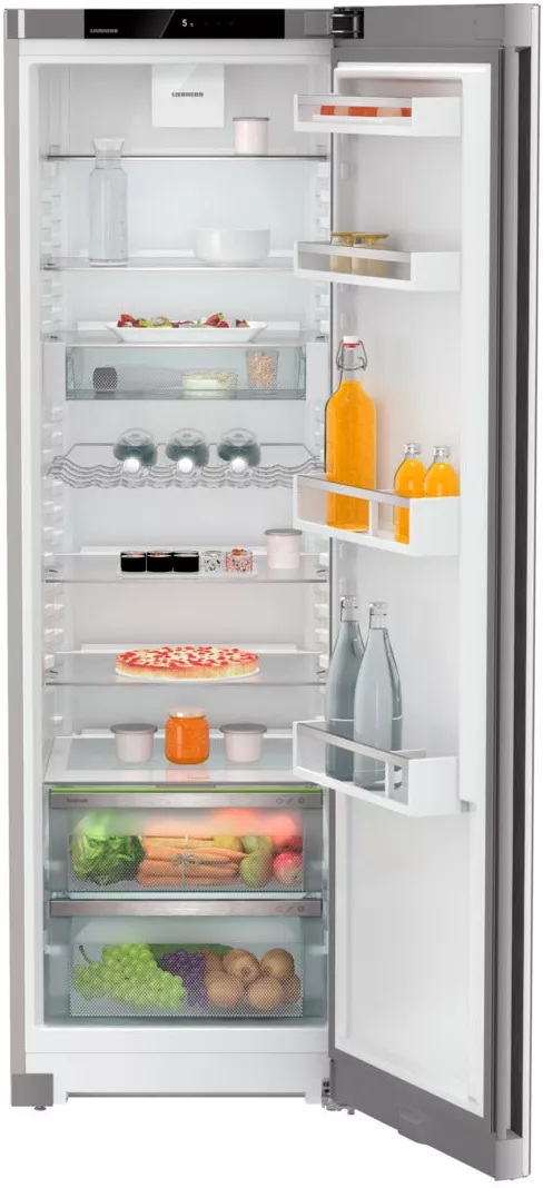 Однокамерный холодильник Liebherr SRsfd 5220 высотой 185,5 см создан для аккуратного и бережного хранения большого количества продуктов. В модели предусмотрено рациональное внутреннее пространство: 7 полок (включая складную двойную), переставляемый контейнер VarioSafe, бутылочница и зона свежести с двумя закрытыми контейнерами с разной влажностью. Продуманная компоновка и возможность установки вплотную к стене помогают гибко вписать прибор в кухню.