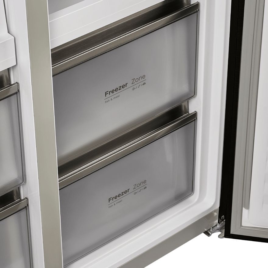 Регулируемая влажность и температура около 0 градусов — специальная зона для качественного хранения мяса, рыбы, морепродуктов, сыров и молочных продуктов.