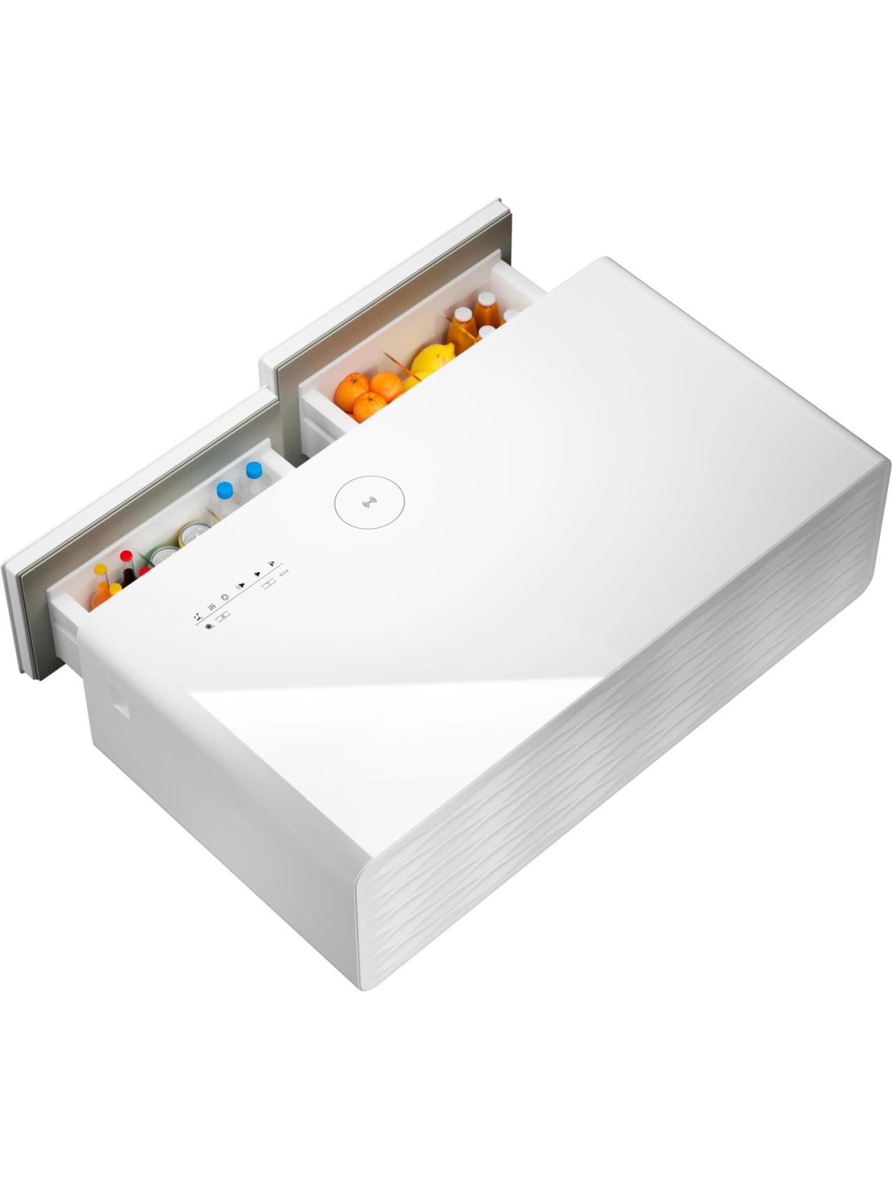 Холодильный барный центр – это больше, чем журнальный стол: модель совмещает функции холодильника, музыкального центра, зарядной станции и источника питания для гаджетов.