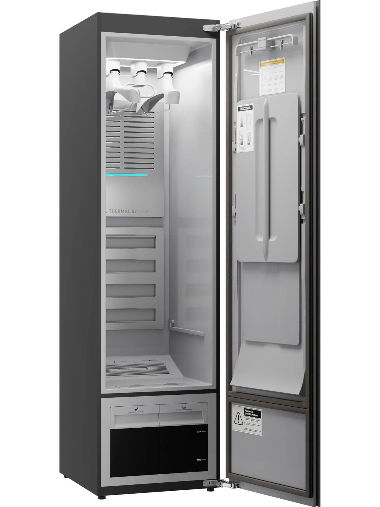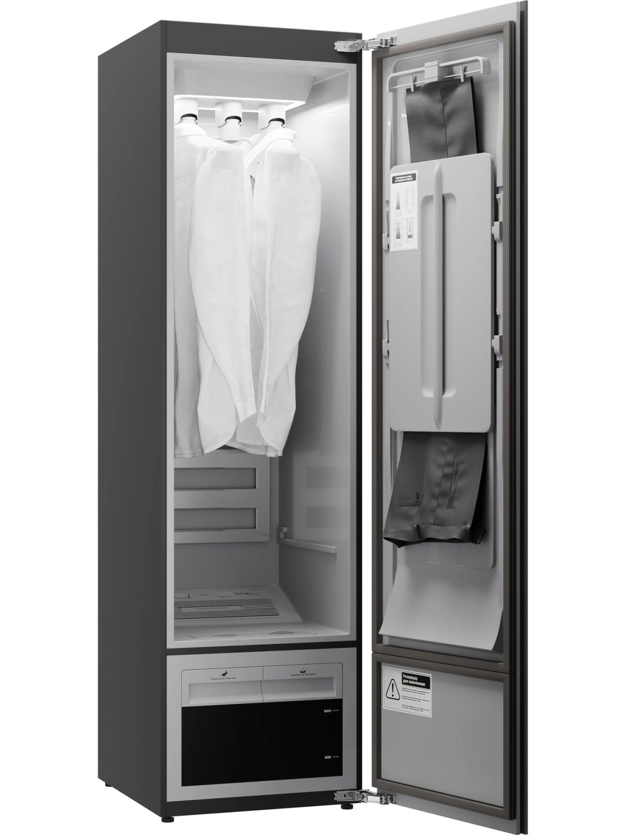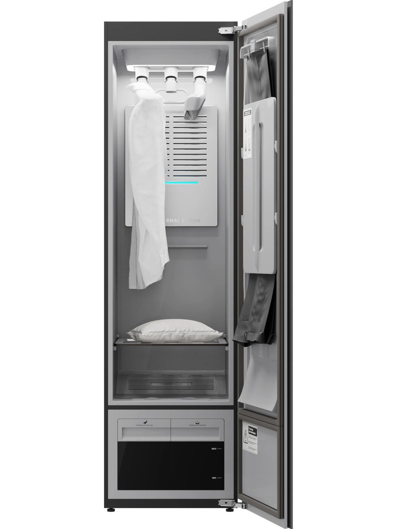 В основе — технологии, которые работают на комфорт каждый день: плазменная стерилизация помогает избавиться от бактерий и аллергенов, а конденсационная сушка с тепловым насосом бережно доводит вещи до нужной сухости без пересушивания. Пар подаётся на уровне волокон через воздушные вешалки, обволакивает ткань изнутри и снаружи и разглаживает сложные участки.