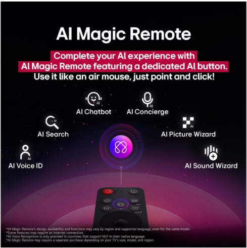 Телевизор работает на платформе webOS 25 с расширенными возможностями Smart TV: встроенный AI Чатбот, веб-браузер, Google Cast, Google Home, голосовое управление без пульта, поддержка AirPlay, LG ThinQ и управление системой "умный дом". В комплекте — пульт Magic Remote, а также функции мультипросмотра, игровой режим с поддержкой FreeSync, G-Sync, HGIG и VRR, что делает его отличным выбором для геймеров.